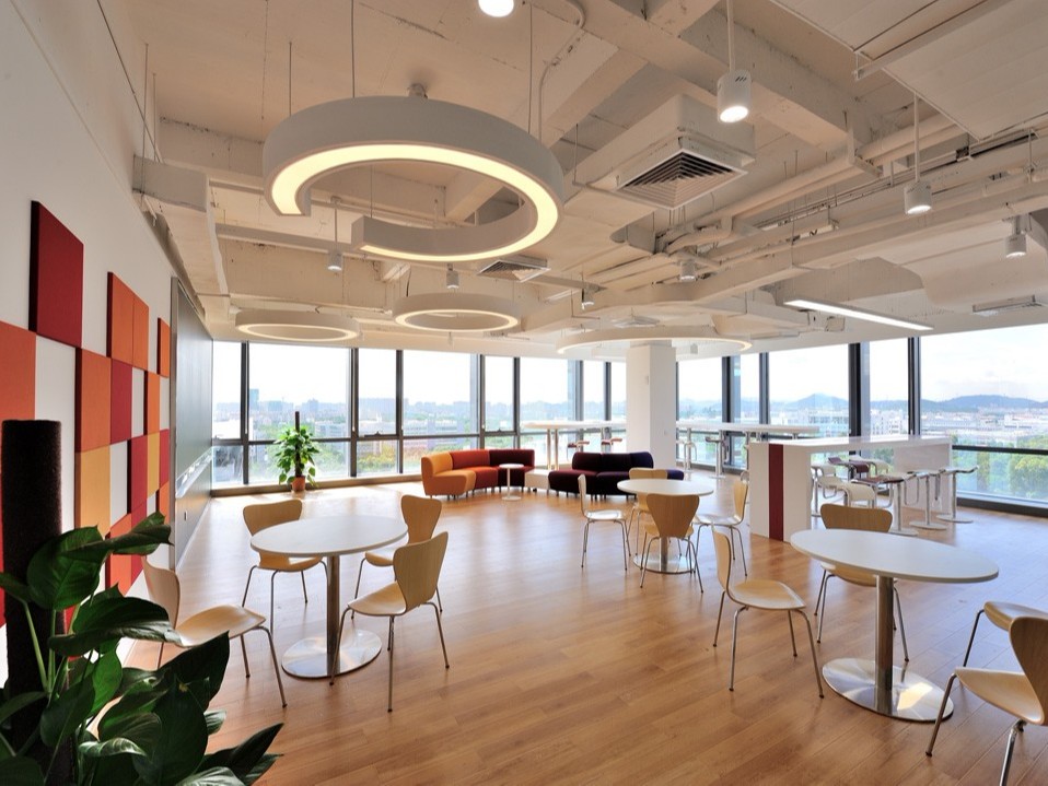 根據(jù)客戶的需求,設(shè)計(jì)師用白色為主色調(diào),朱紅色、橙色、黃色作為調(diào)色在空間中進(jìn)行搭配。以白色為主色調(diào),讓整個(gè)空間呈現(xiàn)現(xiàn)代簡(jiǎn)約的感覺(jué),但過(guò)于單調(diào),設(shè)計(jì)師,紅色、黃色和橙色不僅可以讓整個(gè)空間 “熱鬧起來(lái)”,還凸顯企業(yè)特色。